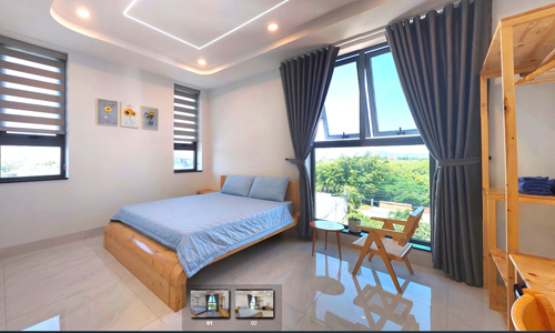 Phòng có 1 giường 1m6 được thiết kế lịch sự, trang nhã, đầy đủ tiện nghi, đặc biệt có rất nhiều cửa sổ nhìn ra không gian bên ngoài thoáng mát. Có trang bị tivi màn hình lớn kèm Netflix, rất thích hợp cho cho các cặp đôi muốn trải nghiệm cảm giác lãng mạng riêng tư.