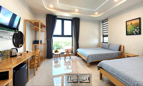 Phòng có 2 giường 1m6 được thiết kế hiện đại, rộng rãi, đầy đủ tiện nghi. Đặc biệt có cửa sổ lớn thoáng mát, giúp bạn hít thở không khí trong lành và ngắm nhìn khung cảnh xung quanh. Phòng phù hợp cho gia đình hoặc nhóm bạn trẻ muốn có không gian đủ lớn để xum vầy bên nhau.