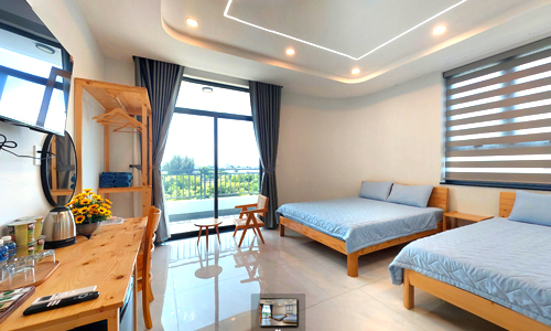 Phòng gồm 2 giường 1m6 có ban công là lựa chọn lý tưởng cho gia đình 4 người hoặc nhóm bạn, mang lại không gian rộng rãi, thoải mái và tầm nhìn thoáng đãng, lý tưởng để thưởng thức cà phê sáng và ngắm bình minh. Phòng được thiết kế trang nhã, lịch sự, đầy đủ tiện nghi.